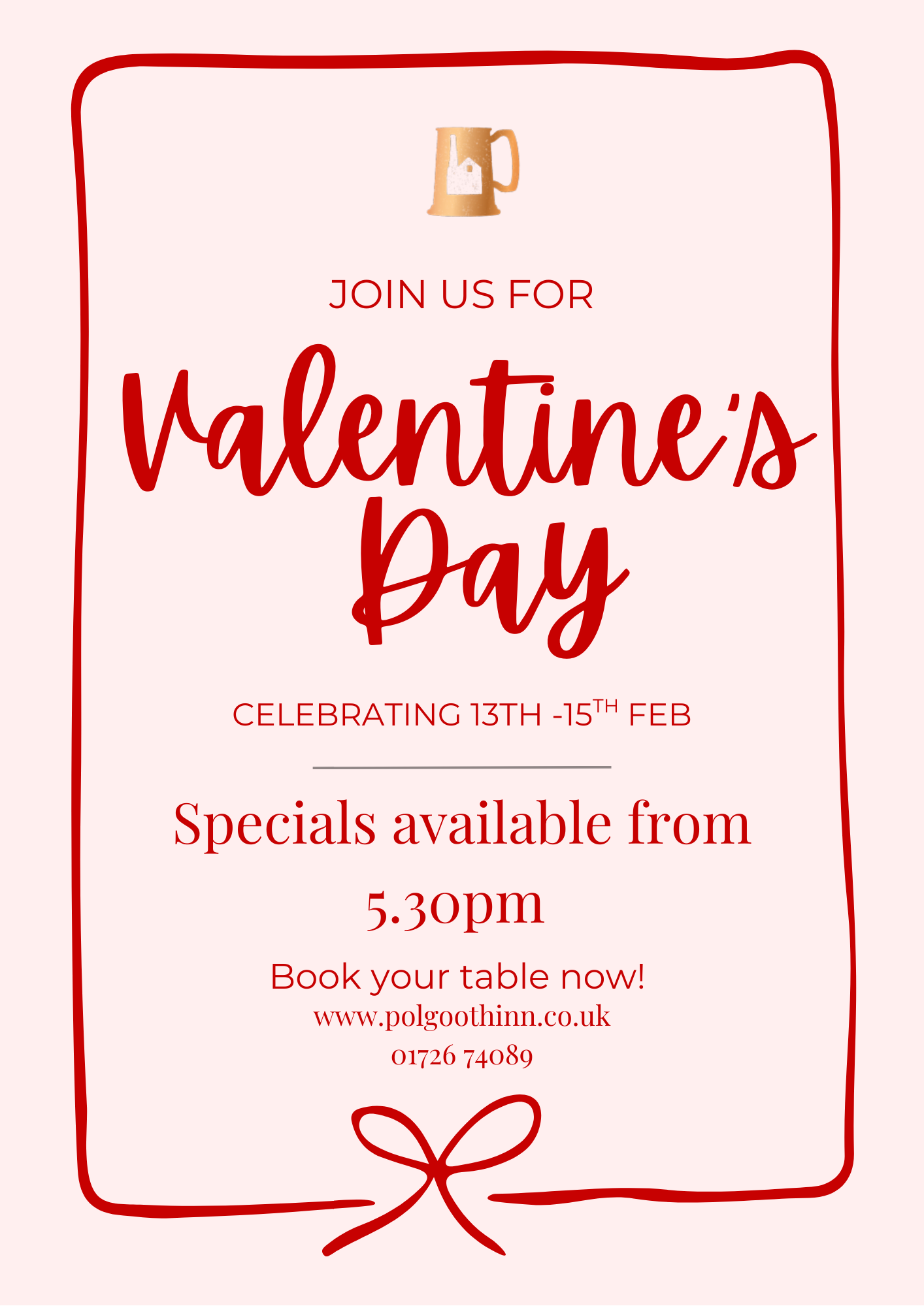 *We will not be serving food from 6pm onwards on Saturday 27th*
