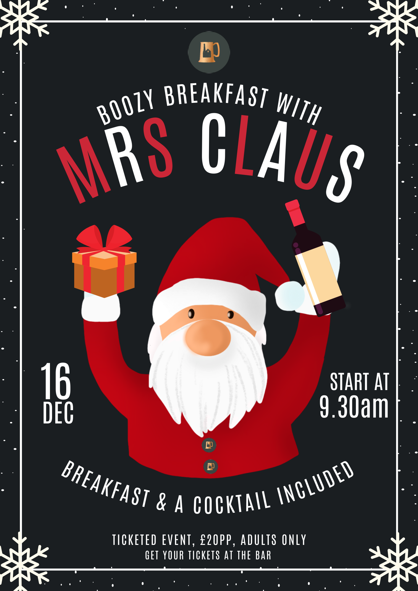 Tickets available in house or over the phone, £20pp including breakfast, a cocktail & a gift from Mrs Claus