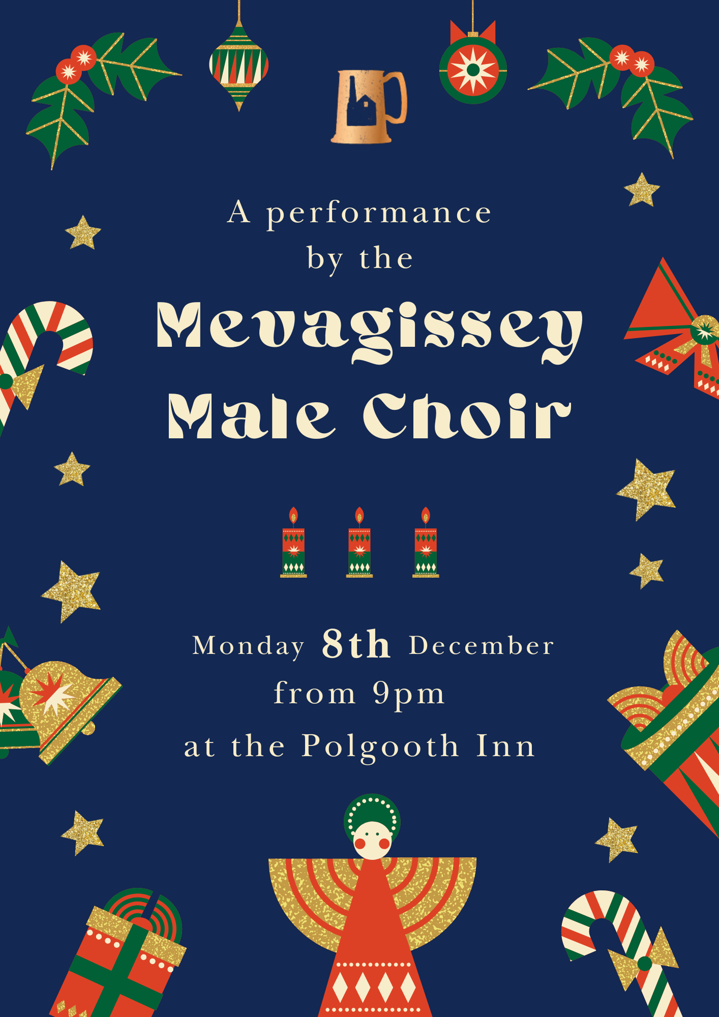 The Mevagissey Male Choir will be joining us for another year, with a lovely festive sing-song